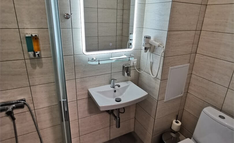 Номер с одной или двумя кроватями (односпальные или двуспальная, диван-кровать) оснащен телевизором, холодильником, чайником, феном, кондиционером и мягкой мебелью. В номере есть балкон с видом на лес или внутренний двор и Wi-Fi. Ванная комната с душевой кабиной, раковиной, мылом, банными полотенцами и принадлежностями. Также имеются шкаф для одежды, обеденный стол и тумба.